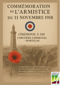 La population est invitée à se rendre au monument aux morts, cimetière communal, pour la commémoration de l’Armistice de 1918, le mardi 11 novembre 2025 à 11h00.