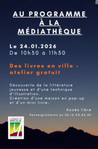 La Médiathèque Martillac participe à la 10ᵉ édition des « Nuits de la lecture », sur le thème « Villes & campagnes », du 21 au 25 janvier 2026.