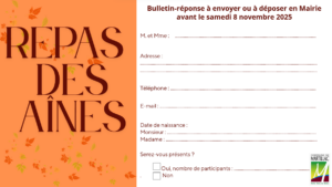 Le traditionnel « REPAS DES AÎNÉS », organisé et offert par la Municipalité, aura lieu le dimanche 30 novembre 2025, à 12h00, à la salle Multi-activités des Vignes.Plaine des Sports de Martillac.