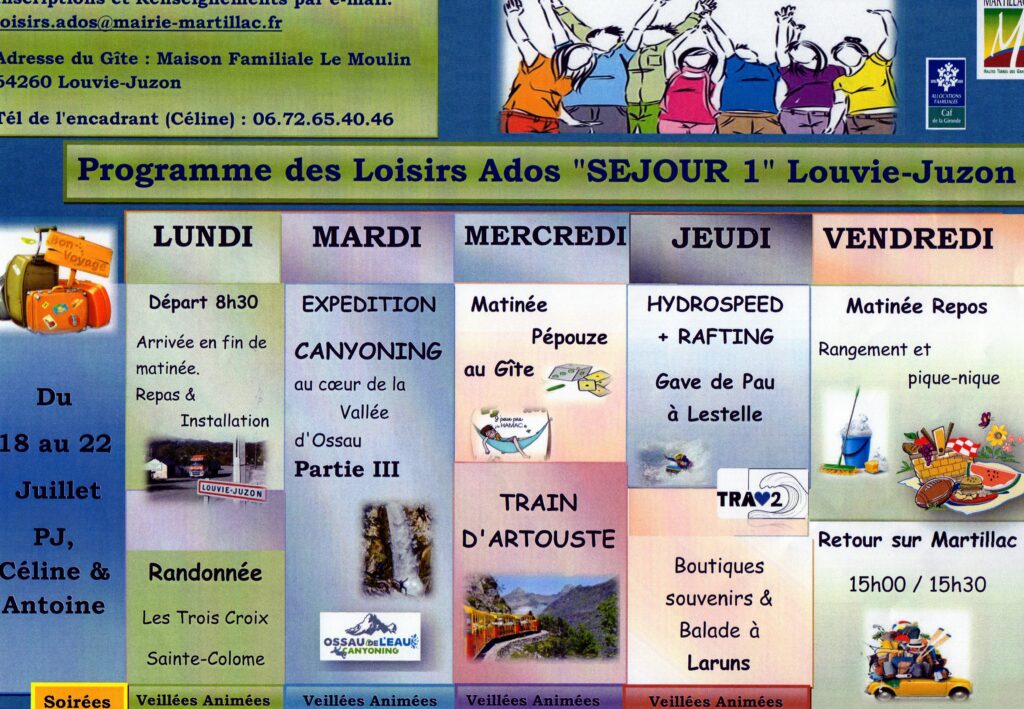 Sur ce lien, retrouvez les informations concernant le séjour des ados.